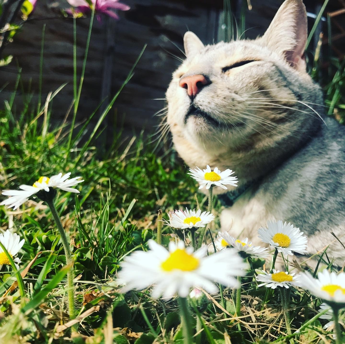 Leo smelling the daisies